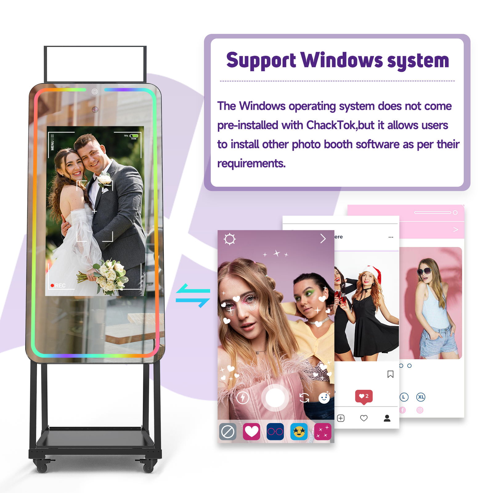 Re:As defualt,it supports Chacktok Photo booth software based on Android OS, we're gonna give you 6-months free VIP to use, Chacktok support rental business mode, party mode and share station mode to support your Photo booth business.