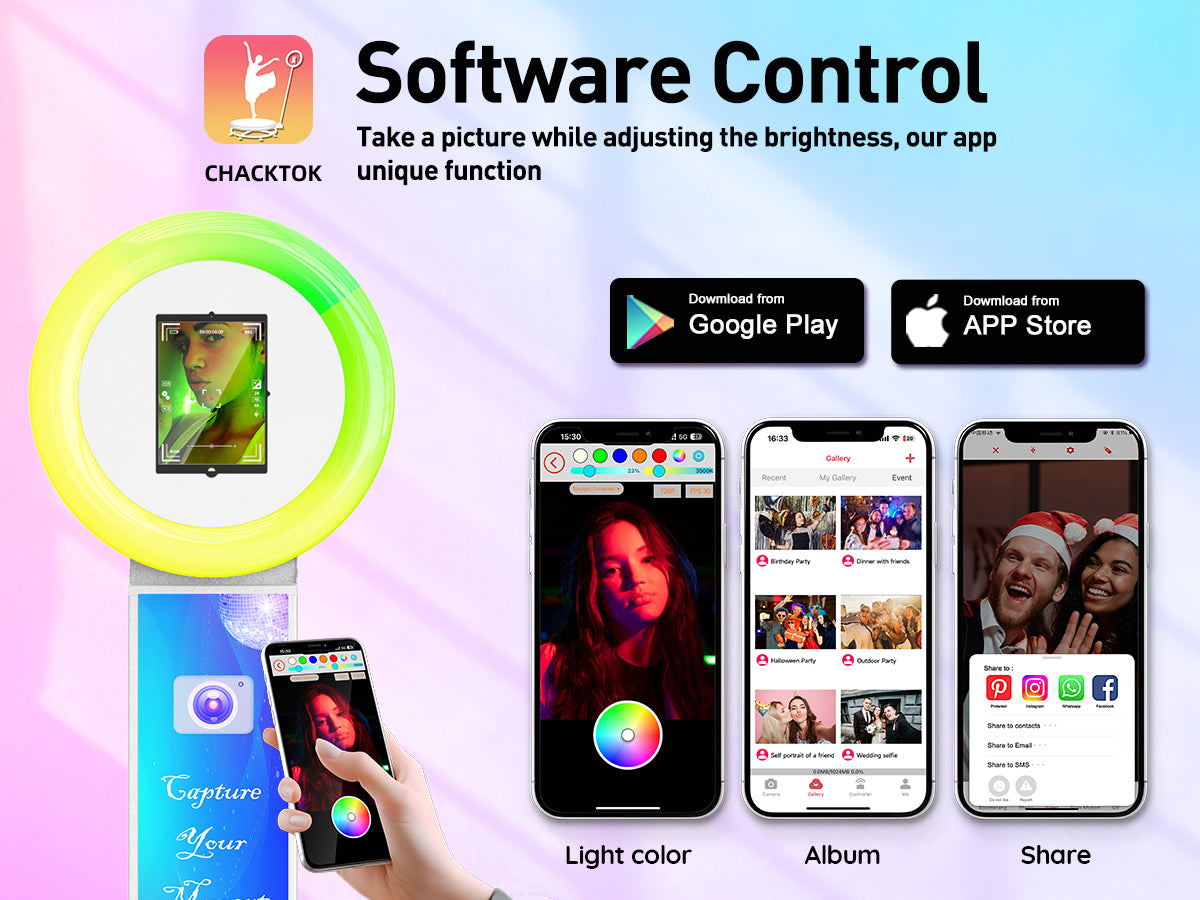 (Note:Chacktok temporirly doesn't support remote control the color of fill light by Wireless Bluetooth connection.)