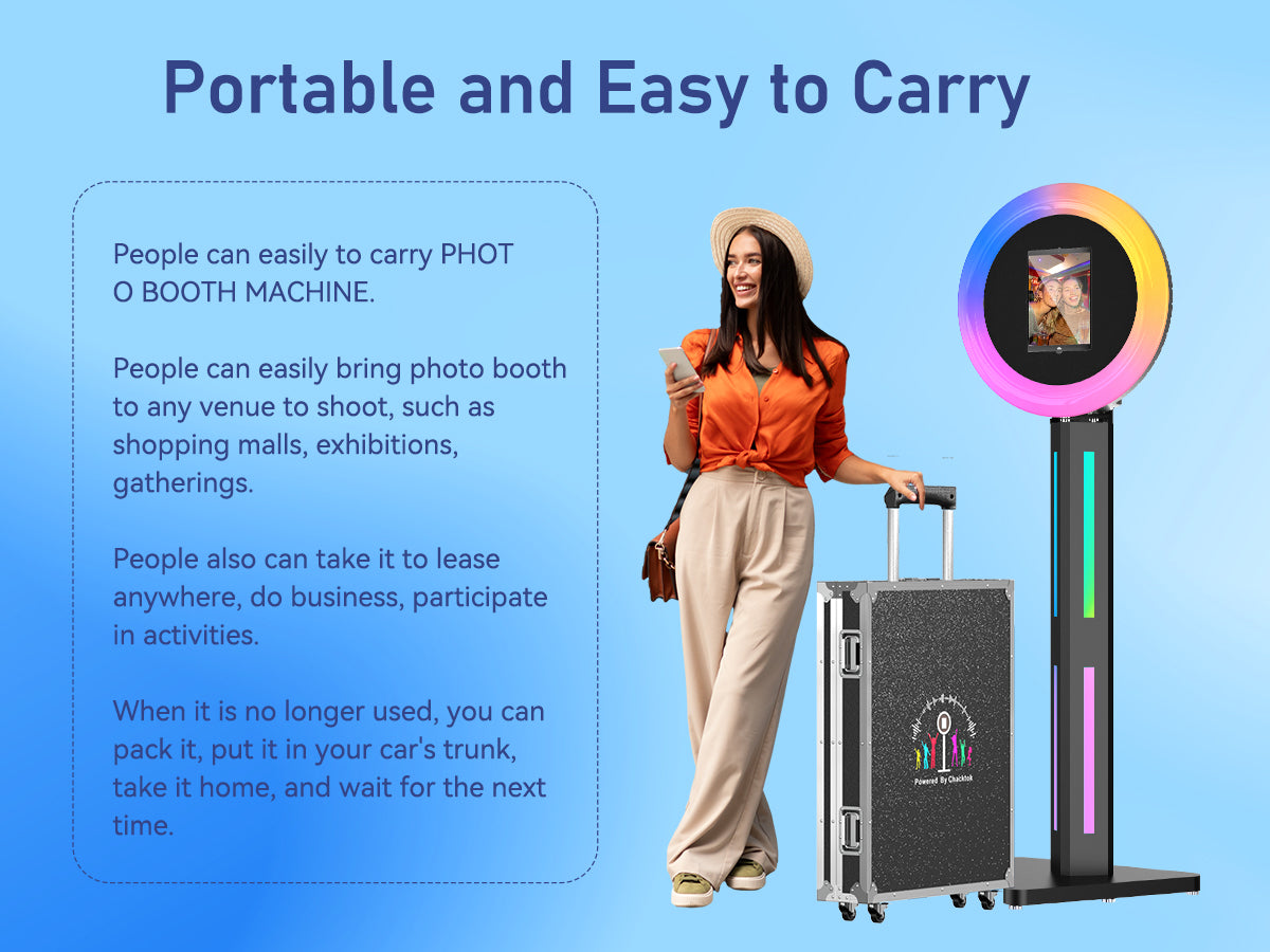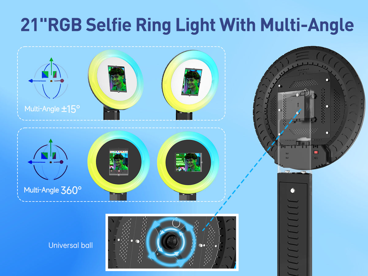 HARZHI Portable Photo Booth Compatible with Any Ipad, Separable Triangular Ipad Photo Booth for Christmas Wedding Party Shell Stand Software APP Control Ring Light.